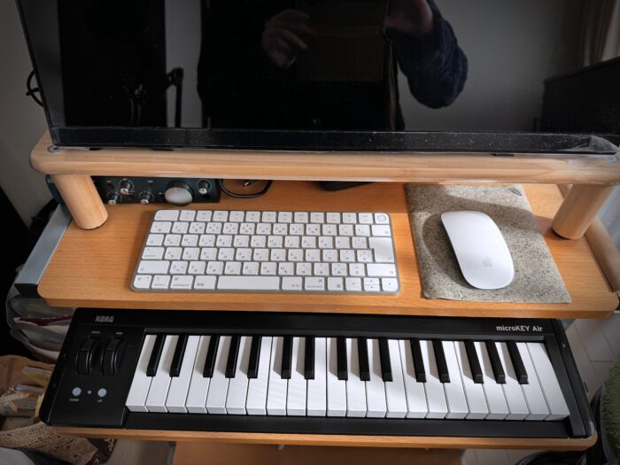 また、MIDIキーボードはPCラックに収まるよう、予めしっかりと採寸して購入したため、抜群の収まりでした!
