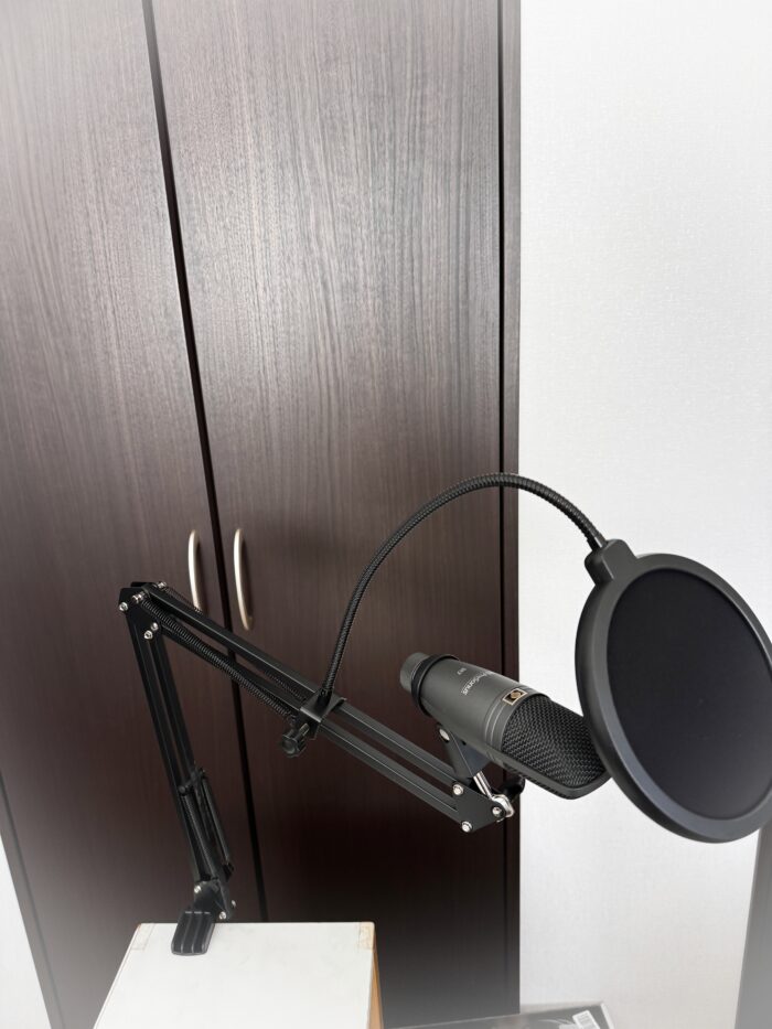 随分前にコンデンサーマイク、オーディオインターフェイス、マイクスタンドなどの機材を購入するも、部屋に設置するのがどうも億劫(^^;;で、一年以上も放置状態(笑)になっていたのでした・・・。(^^;;