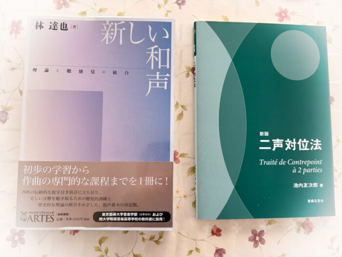 そのため、和声記号の示し方は島岡流で行いますが、私自身、対位法に関しては池内友次郎流派で学びましたので、こうした優れたメソードは後世に繋いでゆく責任を自身でも自覚しております。また、現代、島岡流派以降に東京芸大で採用されている『新しい和声 (林達也 著)』に関しても他の流派という事にはなりますが、取捨選択できる部分の研究も行っています。